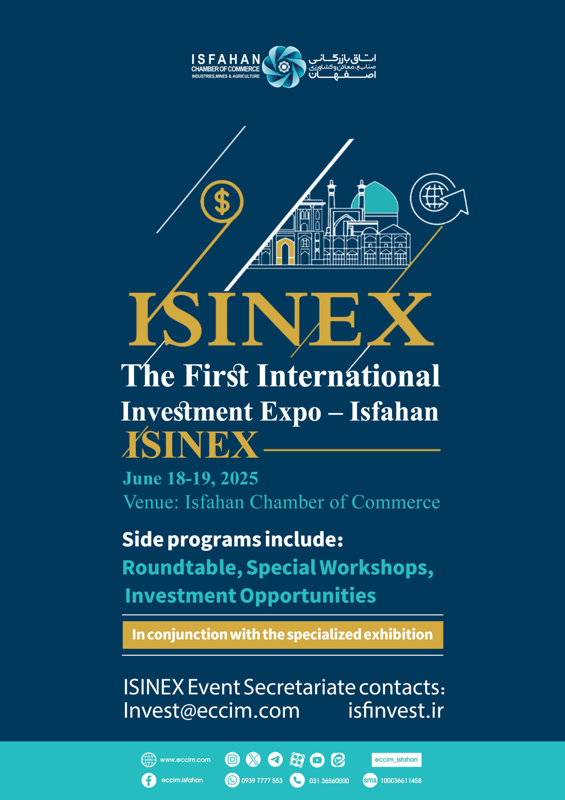The 1st International Investment Expo of Isfahan (ISINEX) will be held on June 18–19, 2025 in Isfahan Iran.