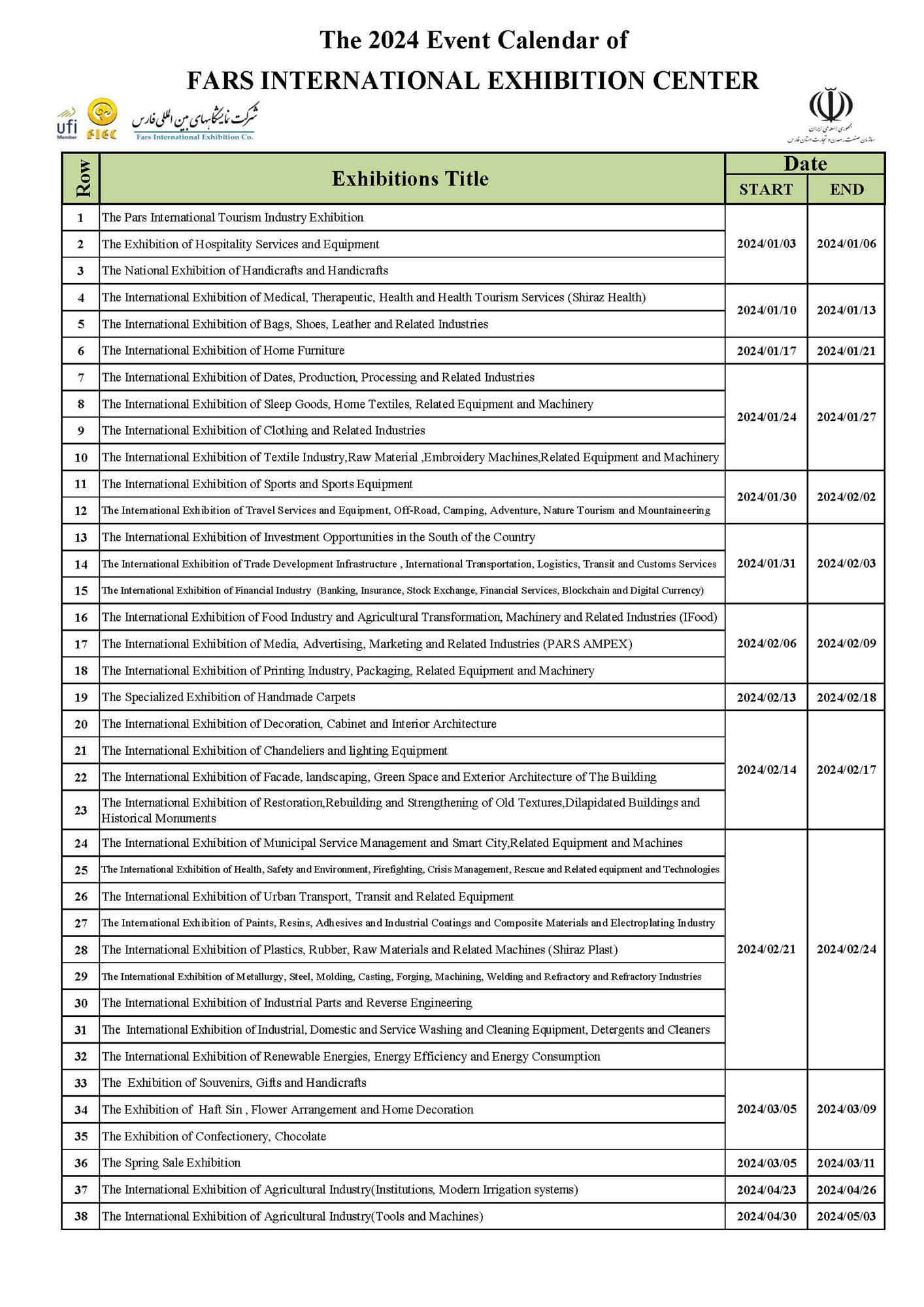 تقویم مرکز نمایشگاه‌های بین المللی فارس