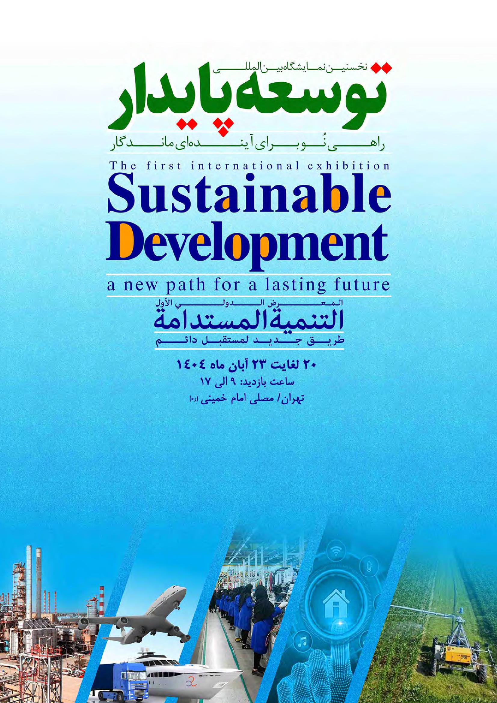 «نخستین نمایشگاه بین‌المللی توسعه پایدار» به عنوان یکی از جامع‌ترین رویدادهای منطقه در زمینه حکمرانی مطلوب، عدالت توسعه‌ای و پیوند میان سیاست، علم و فناوری با مشارکت نهادهای دولتی، صنعتی، دانشگاهی، شرکت‌های دانش بنیان، سازمان‌های بین‌المللی و موسسات تحقیقاتی توسط شرکت «فرداد سیال چهار فصل» از تاریخ 20 الی 23 آبان ماه 1404 (11 الی 14 نوامبر 2025) در تهران برگزار می‌گردد.