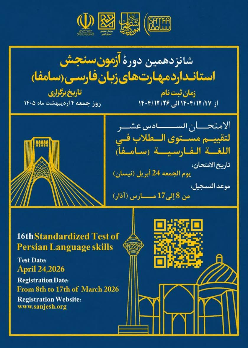 بر اساس اعلام وزارت علوم، تحقیقات و فناوری، شانزدهمین دوره آزمون سنجش استاندارد مهارت‌های زبان فارسی-سامفا روز جمعه 4 اردیبهشت 1405 (24 آوریل 2026) برگزار خواهد شد.